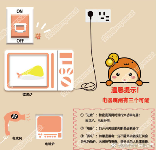 電器跳閘有三個可能:過載、短路和漏電。過載指的是居民家電超負荷工作。居民可檢查家中是否還有其他大功率用電設備是否同時運行。如果是微波爐是插上一段時間后再跳閘,基本可以排除短路可能。只要是電氣設備短路,在一開機的時候就會跳閘。