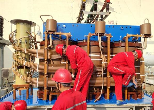 10、110kV變壓器大修吊芯作業(yè),大罩已經(jīng)取掉,工人們穿好專用鞋套,工作服,手套,進(jìn)行絕緣屏障,變壓器高低繞組,鐵芯等的檢查,緊固螺絲、更換密封膠條、膠墊等