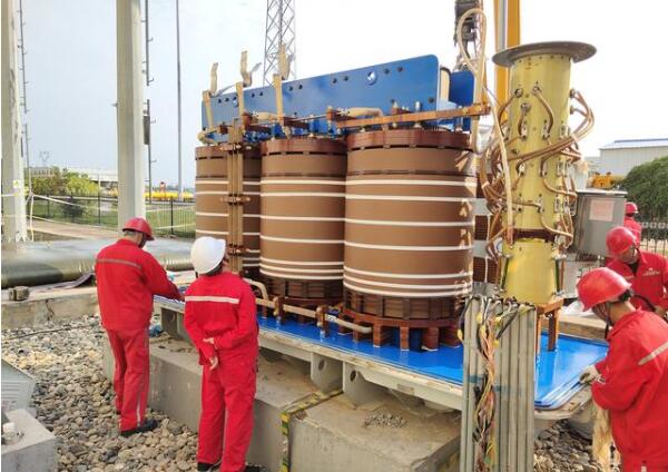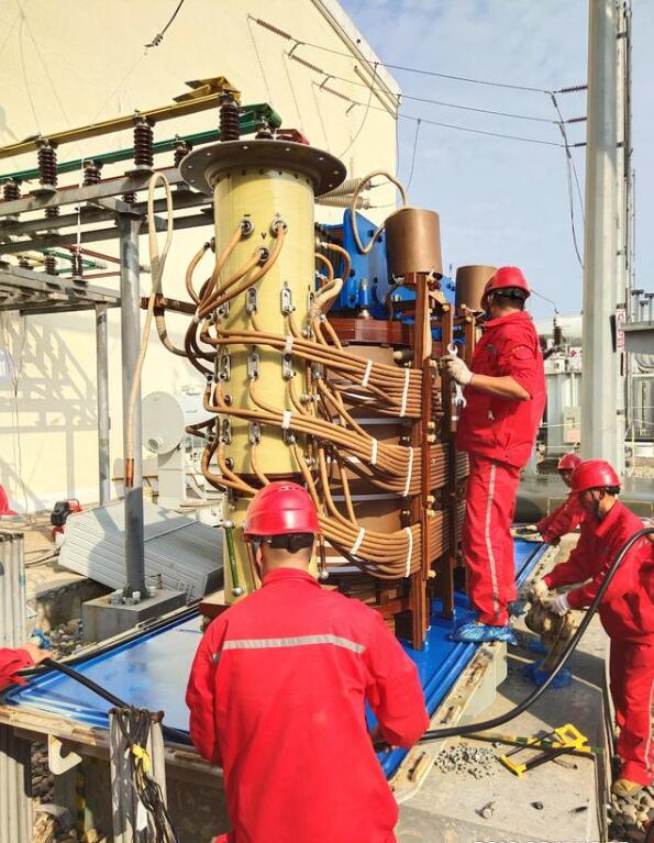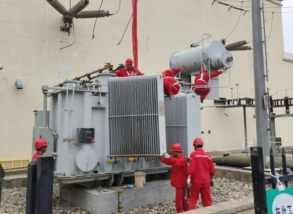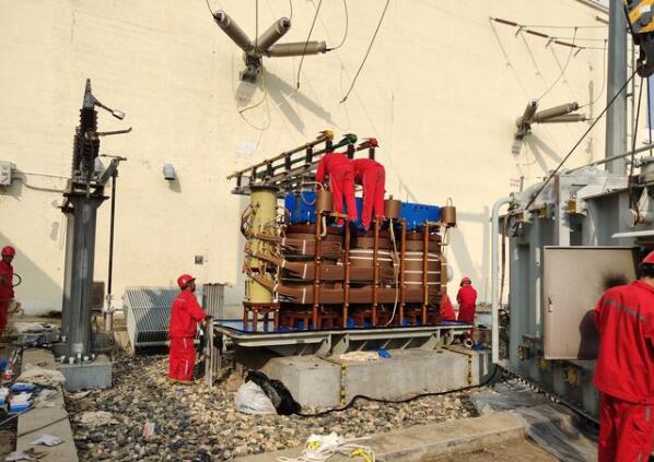 13、110kV變壓器大修吊芯作業(yè),恢復(fù)后的完整變壓器,工人要進(jìn)行整體的噴漆處理