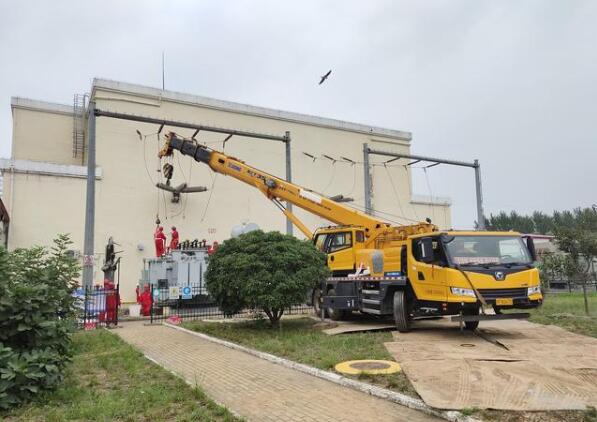5、110kV變壓器大修吊芯作業(yè),采用35噸吊車,吊裝重量不重,為什么用35噸位的呢,因為現(xiàn)場條件有架空導(dǎo)線阻擋,吊裝角度比較小