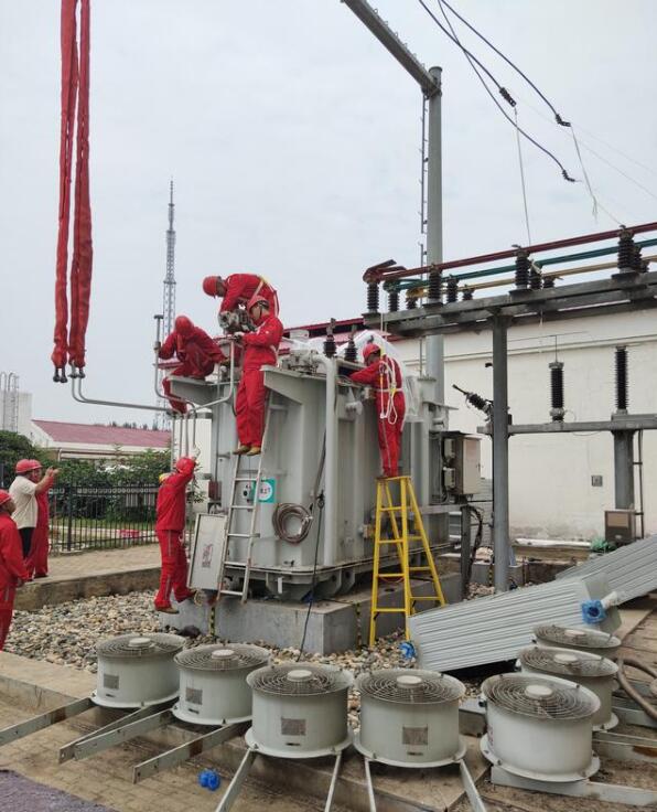 7、110kV變壓器大修吊芯作業(yè),開始吊卸散熱片,散熱風(fēng)扇,油枕等附件