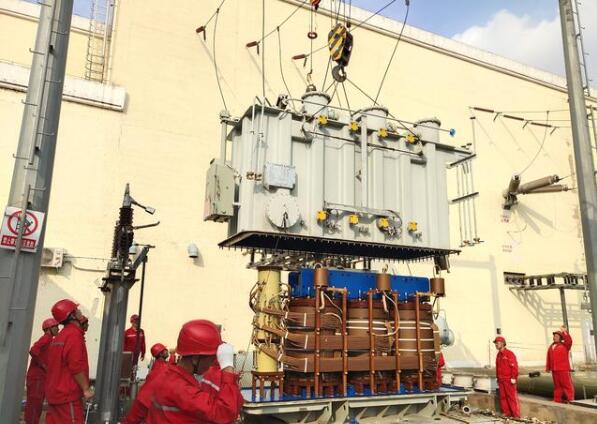 8、110kV變壓器大修吊芯作業(yè),重要工序來了,開始吊變壓器大罩,這是個細(xì)心的活,要求吊車司機(jī)具有較高的水準(zhǔn),絕對不能磕碰變壓器繞組