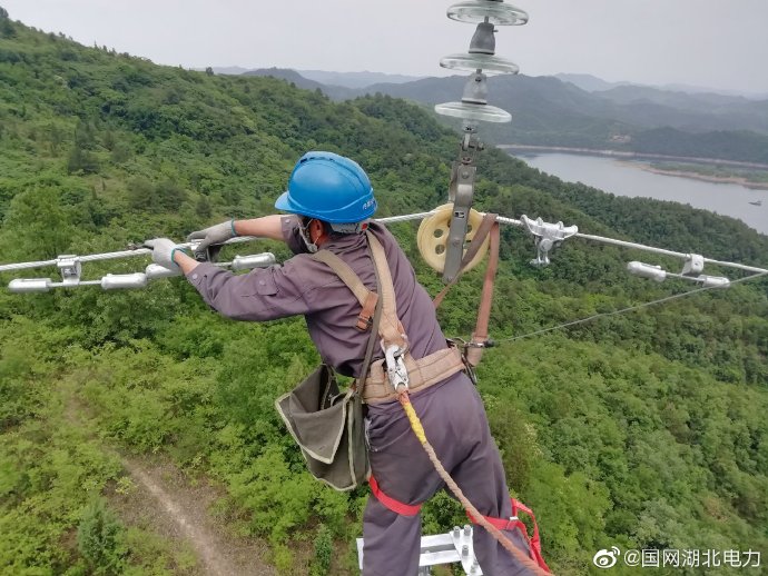 5月20日,國網(wǎng)丹江口市供電公司輸變電工程分公司員工不畏艱險,全力以赴在該市二道河村為新建35千伏丁土線安裝線路防振錘,安裝完畢后,能產(chǎn)生與導線振動相位相反的運動,從而使導線振動消除或減弱,進一步提升電網(wǎng)供電可靠性。