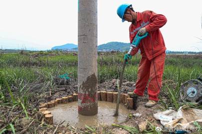 #浙江電力快訊#【供電公司開(kāi)展配網(wǎng)防臺(tái)風(fēng)專項(xiàng)整治】 5月31日,@國(guó)網(wǎng)寧海縣供電公司?施工人員在寧??h越溪鄉(xiāng)最大的海水養(yǎng)殖基地——西溪塘開(kāi)展2020年臺(tái)風(fēng)專項(xiàng)整治工程,澆筑圓形水泥加固電桿桿基。該公司計(jì)劃對(duì)全縣容易因臺(tái)風(fēng)影響發(fā)生傾斜的電桿進(jìn)行基礎(chǔ)加固。防臺(tái)風(fēng)專項(xiàng)整治工程共涉及4條10千伏配電線路、36個(gè)臺(tái)區(qū),1131處海塘桿線基礎(chǔ)和新增防風(fēng)拉線或砌筑素混凝土護(hù)坡。工程計(jì)劃于6月30日前完工,爭(zhēng)取在迎峰度夏前完成易受臺(tái)風(fēng)影響區(qū)域電桿加固工作。