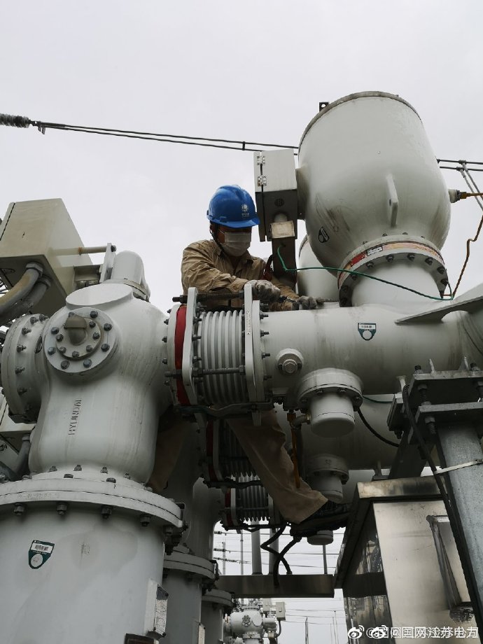 6月5日,在500千伏吳江變電站現(xiàn)場,國網(wǎng)江蘇檢修公司蘇州運(yùn)維站變電修試二班班員正在開展220千伏GIS罐體連接發(fā)熱隱患消除工作。一絲不茍地處理發(fā)熱點(diǎn),確保設(shè)備恢復(fù)正常。