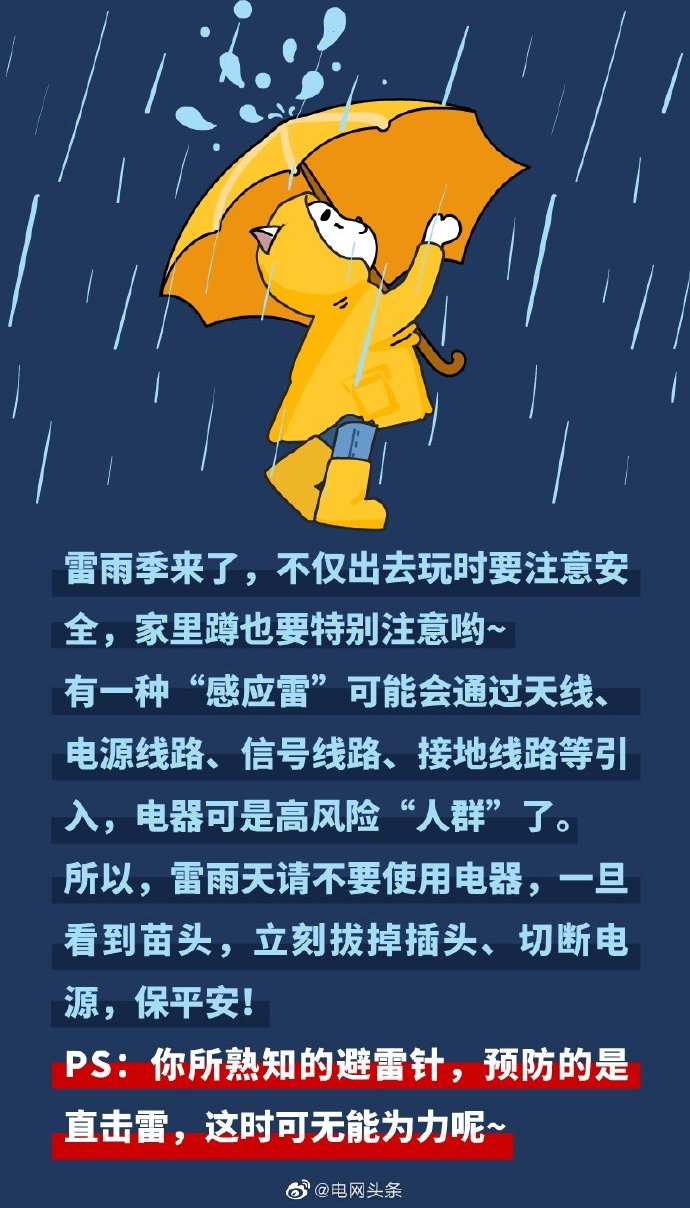 雷雨季來了,不僅出去玩時(shí)要注意安全,家里蹲也要特別注意呦~ ????