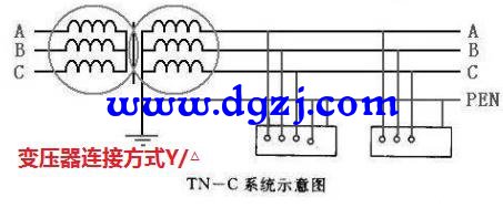 一般在低壓配電線路中都采用的是四根導(dǎo)線進行傳輸?shù)摹T诟邏?0KV降到低壓380V的過程中所用的變壓器,它的一次繞組的連接形式是三角形的連接方式,變壓器的二次繞組所采用的連接方式是星形連接方式,如下面的示意圖所示。這樣以來從變壓器中性點引出的導(dǎo)線我們叫它工作零線,從變壓器次級繞組上引出的線叫火線。