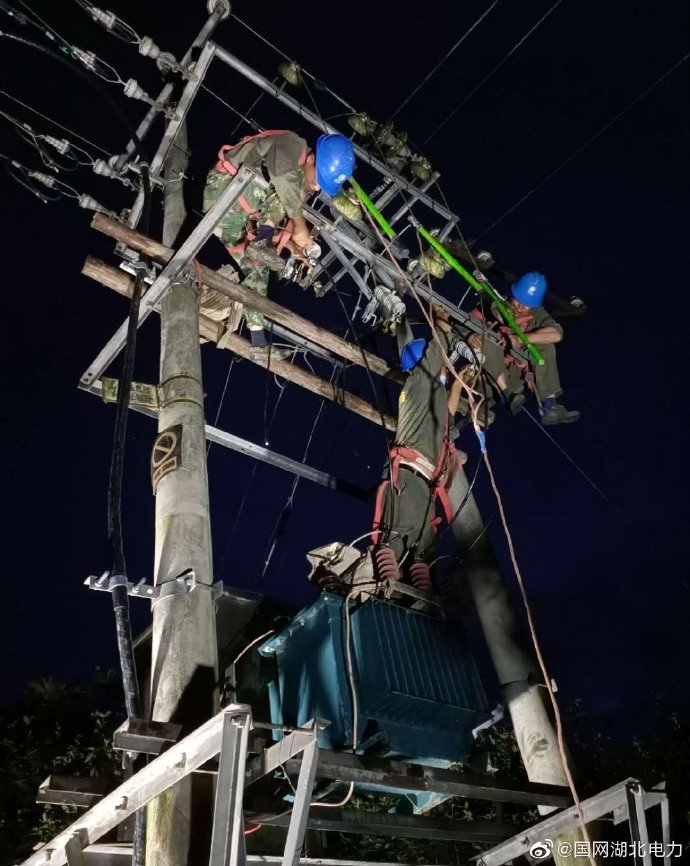 6月18日,來鳳縣遭遇暴雨,活水3隊(duì)因雷擊導(dǎo)致3號(hào)公變燒毀,國(guó)網(wǎng)來鳳縣供電公司運(yùn)維檢修部搶修人員在接到搶修信息后立即迅速趕赴現(xiàn)場(chǎng)。因運(yùn)輸車輛無法直接到達(dá),“電哥哥”只能靠肩挑背扛,一路披荊斬棘冒雨前行,終于將重約500公斤的變壓器扛至搶修現(xiàn)場(chǎng),經(jīng)過6小時(shí)雨夜鏖戰(zhàn),晚上11點(diǎn),順利恢復(fù)故障區(qū)域的供電。