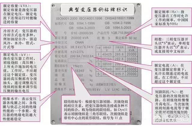 上圖是一張變壓器的銘牌解釋圖,可以看到,要清楚的描述一個變壓器,所用到的參數(shù)還是非常多的,遠不止樓主說問的那么簡單。