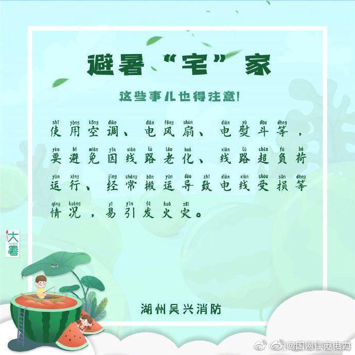 少人選擇避暑“宅”家,開(kāi)著空調(diào)吃著西瓜……提醒大家享受愜意生活的同時(shí),這些事兒也得注意,????使用空調(diào)、電風(fēng)扇、電熨斗等要避免因線路老化、線路超負(fù)荷運(yùn)行,經(jīng)常搬運(yùn)導(dǎo)致電線受損等情況,易引發(fā)火災(zāi)。