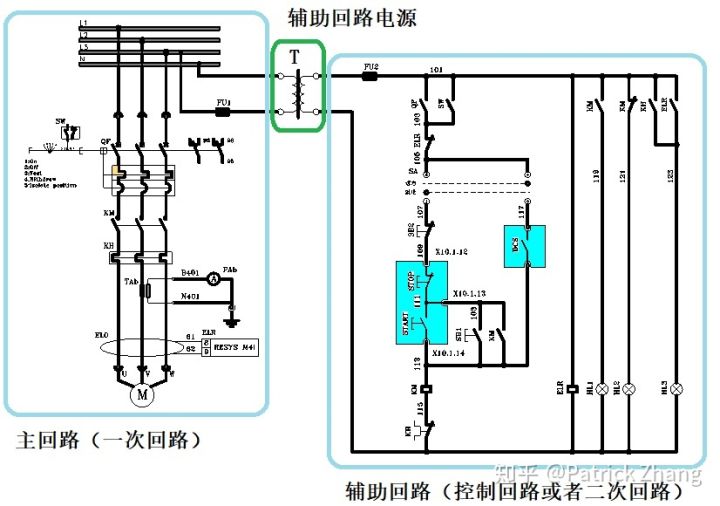 圖1中,左側(cè)是主回路,也叫做一次回路。右側(cè)是輔助回路,也叫做控制回路或者二次回路。