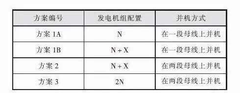 3種不同型式按發(fā)電機組配置、并機方式可歸結為表1所示的4種發(fā)電機組供電系統(tǒng)方案。