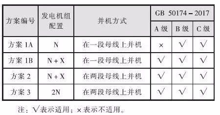 表3 發(fā)電機組供電系統(tǒng)方案和GB50174-2017數據中心等級的適用關系
