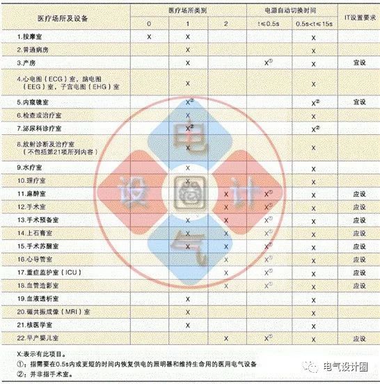 3.3、典型醫(yī)療場所低壓配電設(shè)計潔凈手術(shù)部為了保證用電可靠性,潔凈手術(shù)部根據(jù)防火分區(qū)及潔凈區(qū)的劃分,分別設(shè)置配電總柜。配電總柜設(shè)置在非潔凈區(qū),采用雙電源供電,其中一路引自應(yīng)急母線,設(shè)置自動切換。后端經(jīng)UPS 后再分配至每個潔凈手術(shù)室的專用配電箱。手術(shù)室內(nèi)除手術(shù)臺驅(qū)動機構(gòu)及非生命支持系統(tǒng)的電氣設(shè)備外,對于其他醫(yī)療設(shè)備,均應(yīng)用醫(yī)療場所局部IT 系統(tǒng)供電方式。另外,還需要注意,設(shè)置短路及過負荷保護。