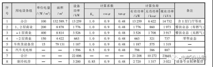 表1 方案設(shè)計階段用電負荷計算表