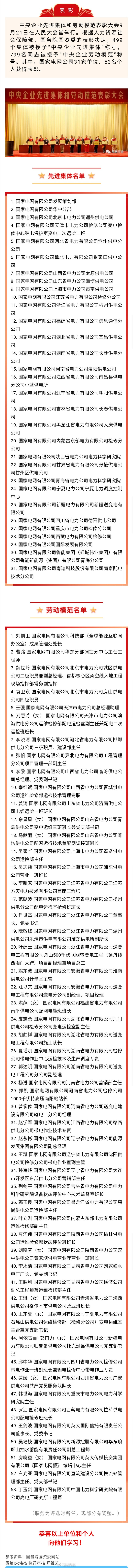 【人社部、國資委表彰國家電網(wǎng)這些集體和個人】中央企業(yè)先進(jìn)集體和勞動模范表彰大會9月21日在人民大會堂舉行。根據(jù)人社部、國資委的表彰決定,499個集體被授予“中央企業(yè)先進(jìn)集體”稱號,799名同志被授予“中央企業(yè)勞動模范”稱號。其中,國家電網(wǎng)公司31家單位、53名個人獲得表彰。