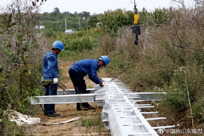 【立新塔 架新線 輸送安全新電能】10月8日,國網(wǎng)蓬萊市供電公司組織5名工作人員在35千伏季崮線進行組塔工作,此次施工將原先老舊鐵塔、電纜及附件拆除后,又移位重新組立鋼管塔1基,為安全供電提供了保障。 ????