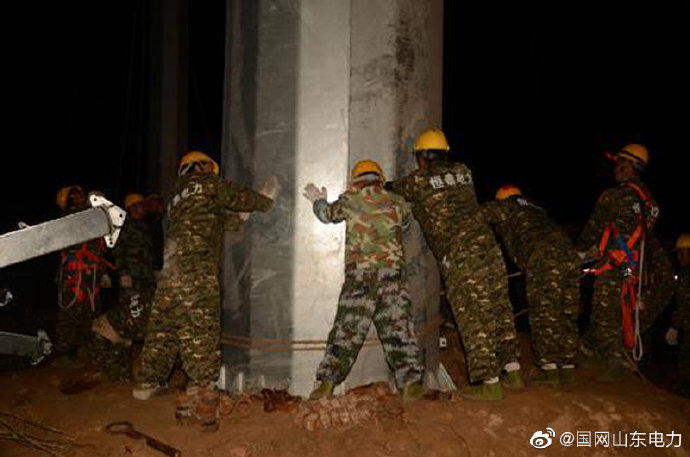 10月14日,國網(wǎng)曹縣供電公司深夜1時許,隨著指揮員一聲令下,110千伏石河變電站雙T接工程正式開工,此項工程需拆除24米鐵塔、安裝36米鐵塔各1基,更換導(dǎo)線2200余米,涉及作業(yè)點180余處,經(jīng)過6個小時的不停作業(yè),順利完成了2座鐵塔的拆除和吊裝。 ????