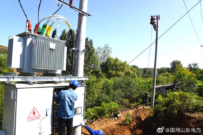 10月20日,國(guó)網(wǎng)臨朐縣供電公司員工為寺頭鎮(zhèn)南西安村新上配變。該村原有配變?nèi)萘啃∏也辉谪?fù)荷中心,無(wú)法滿足全村用電需求,該公司員工為其新立電桿3基,延伸0.4千伏線路50米,新架400千伏安配變1臺(tái),并將配變遷至合理位置,于當(dāng)日裝表接火送電,全村用電問(wèn)題得到解決。