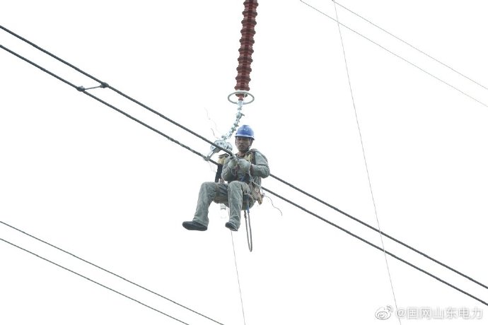 10月29日,在山東威海文登區(qū)九里水頭附近,國(guó)網(wǎng)威海供電公司輸電運(yùn)檢人員高空作業(yè),對(duì)220千伏昆文線77號(hào)塔至78號(hào)塔之間破股導(dǎo)線進(jìn)行修復(fù),保障重要輸電通道安全,220千伏昆文線是220千伏文登站送入線路,為文登東部工業(yè)區(qū)提供可靠的電力支撐。 ????