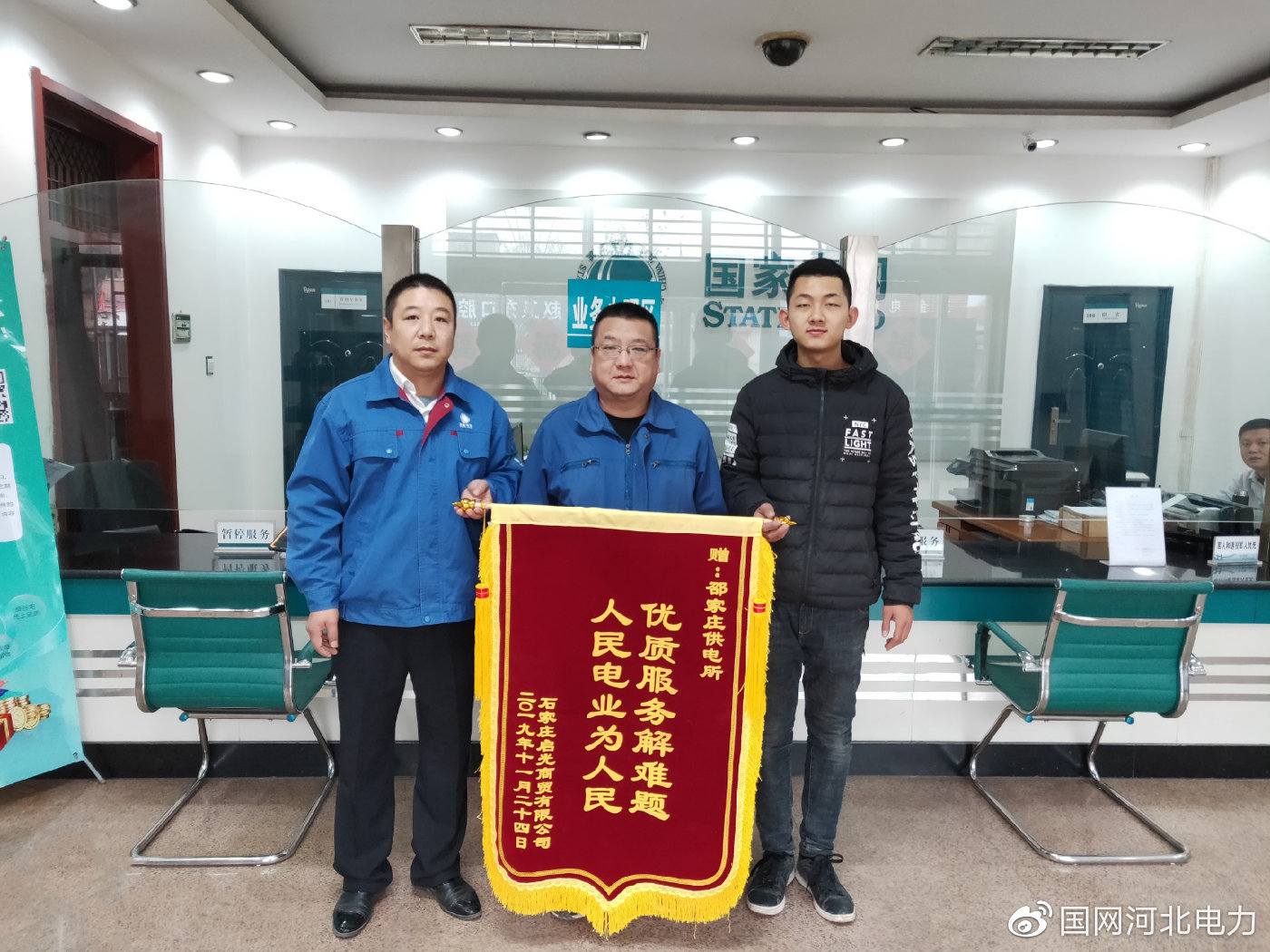 12月2日一大早,欒城區(qū)啟光商貿(mào)有限公司的工作人員手拿一面寫著“優(yōu)質(zhì)服務(wù)解難題,人民電業(yè)為人民”的錦旗送到了國(guó)網(wǎng)石家莊市欒城區(qū)供電公司邵家莊供電所所長(zhǎng)田海賓的手中,感謝該公司員工認(rèn)真負(fù)責(zé),盡心盡力為用戶服務(wù)的工作人員。