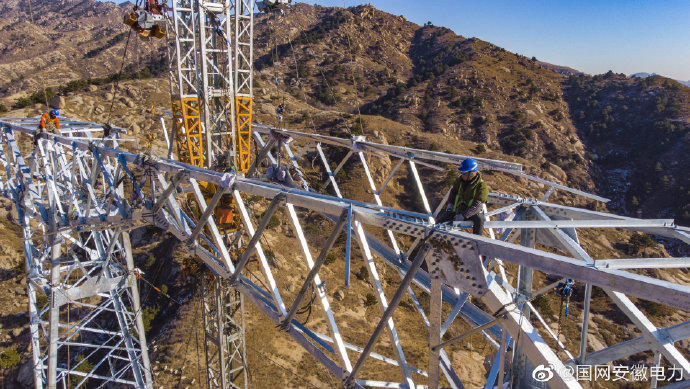 12月12日,在河北省淶源縣塔崖驛鄉(xiāng)境內(nèi),安徽送變電工程有限公司員工正在近零下十?dāng)z氏度的氣溫里加緊張北-雄安1000千伏特高壓線路工程(5標(biāo))4R037、4L039鐵塔組立施工。鐵塔采用座地雙搖臂抱桿的組塔方案,具有占地面積小、安全系數(shù)高等特點(diǎn)。