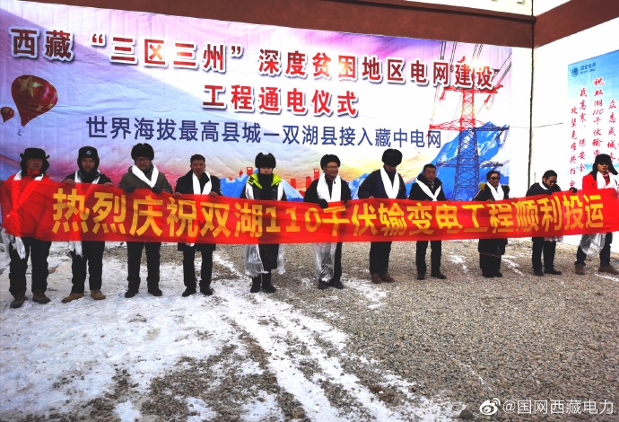 2月24日10時20分,海拔5000米的雙湖縣110千伏輸變電工程投運現(xiàn)場一片歡歌笑語,隨著電力員工合上最后一個開關,標志著世界海拔最高的縣納入了國家電網主網覆蓋范圍,有力解決了該縣7300余名高海拔地區(qū)農牧民群眾用電難的問題。長期以來,雙湖縣一直處于電力孤網運行,僅依靠光伏供電,供電可靠性差,電能質量不高,為了讓更多的農牧民群眾用上大電網的電,提高當?shù)剞r牧民群眾的生產生活用電水平,國網西藏電力實施雙湖縣“三區(qū)三州”深度貧困地區(qū)電網建設工程,總投資約6億元,新建110千伏輸變電工程2項,線路長度270公里,主變容量2萬千伏安;35千伏輸變電工程2項,線路長度123公里,主變容量6000千伏安;10千伏中低壓工程涉及到4個鄉(xiāng)鎮(zhèn),新建10千伏及以下線路236公里,新增臺變21臺,新增配變容量3000千伏安,新建戶表1896戶。