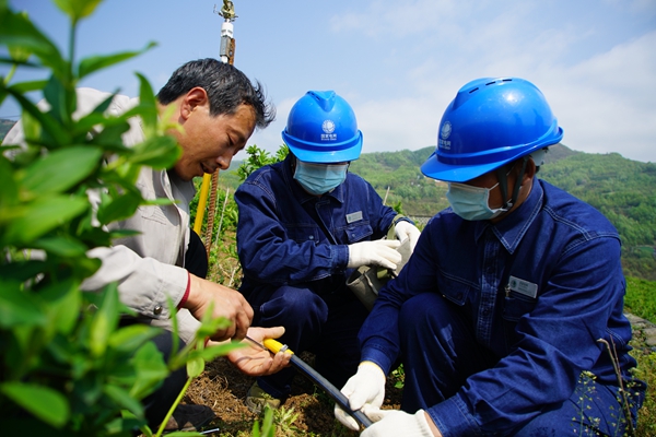 3月25日,正值春耕春灌的關(guān)鍵時期,國網(wǎng)旬陽縣供電公司蜀河供電所的員工來到蜀河鎮(zhèn)郅家灣村,為貧困戶鄧治琪承包的金銀花基地檢查灌溉用電線路,并幫助他安裝調(diào)試灌溉系統(tǒng)。