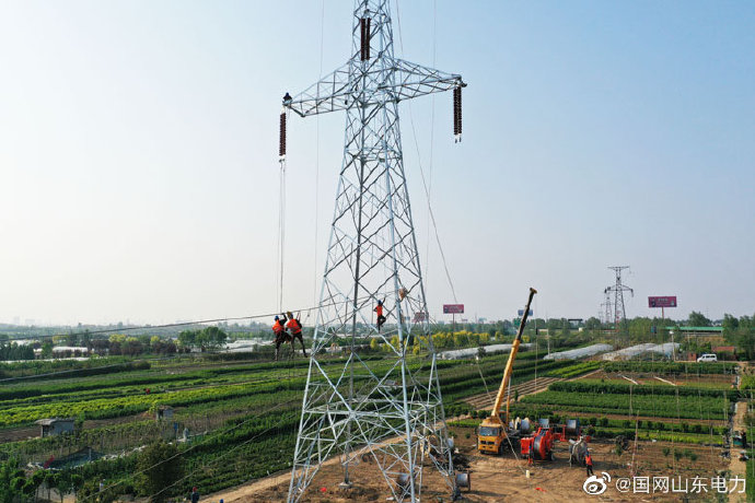 【節(jié)日不休架塔線 全力服務(wù)大項(xiàng)目】5月3日,國(guó)網(wǎng)臨朐縣供電公司員工冒著30度高溫在220千伏樓彌線30多米高空組塔架線。該公司實(shí)施線路遷改攻堅(jiān)行動(dòng),日均出動(dòng)施工人員178人,特種車輛26臺(tái),全力推進(jìn)該線路52基鐵塔遷改,確保龍山高新技術(shù)產(chǎn)業(yè)園“雙招雙引”大項(xiàng)目建設(shè)早日用電。 ????