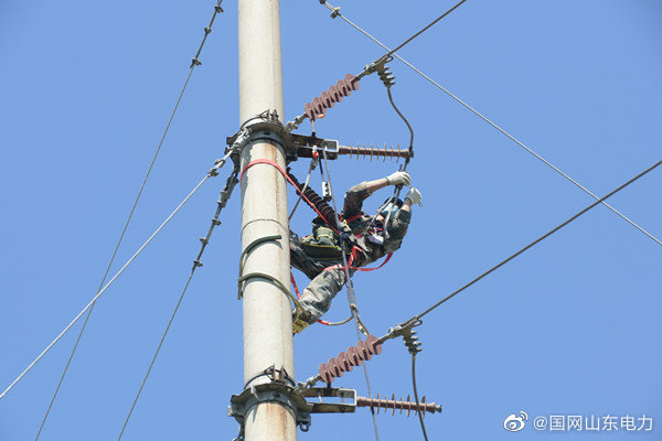 【晴日暖風生麥氣 施工改造迎夏峰】5月6日,國網(wǎng)寧津縣供電公司工作人員對35千伏劉營伍站升級改造,拆除35千伏時劉I線、時劉II線,并對20號桿至劉營伍站門型架構下引線,全力保障該區(qū)域居民夏峰期間可靠用電。