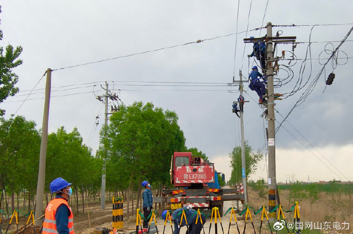 【農網改造 提高供電質量】5月11日,國網利津縣供電公司明集供電所組織人員對10千伏灶子線魯勝油井分支線進行改造。更換老舊開關,提升供電可靠性,保障當?shù)赜途脩粲秒娦枨蟆?????