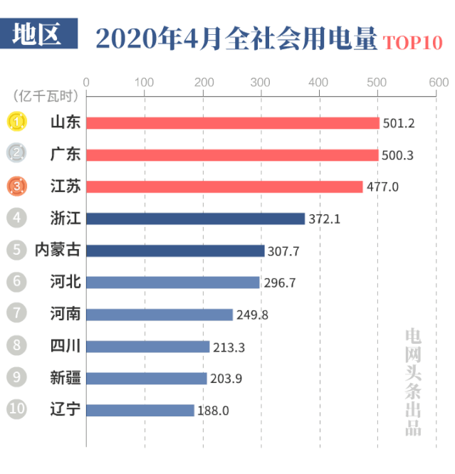 4月份,用電大省誰最強?4月全社會用電量TOP10 出爐~
