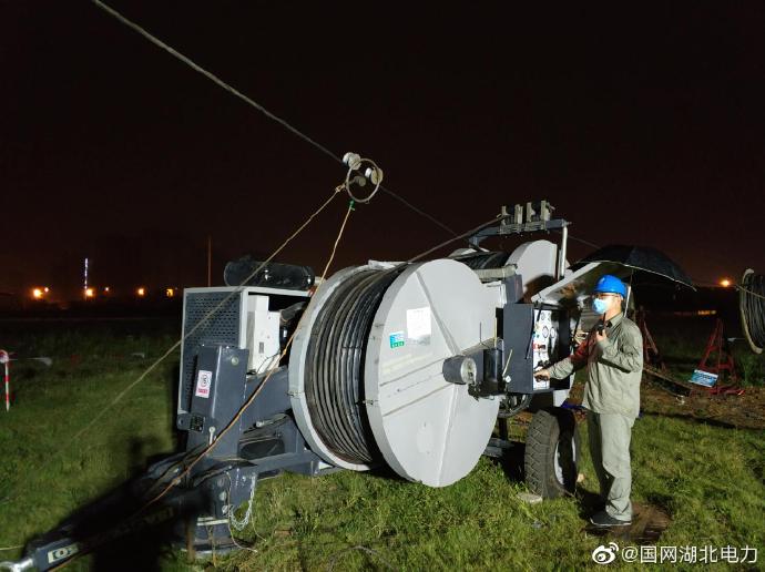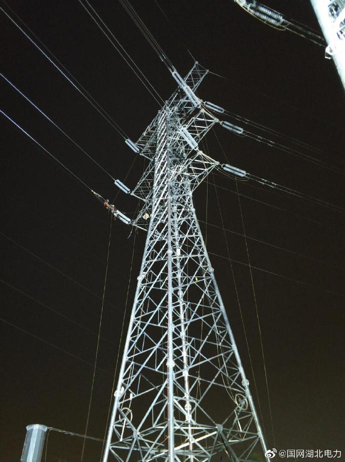 2020年5月20日深夜,武漢楊春湖畔,國網(wǎng)湖北送變電工程有限公司施工人員正在進行220kV鋼桂一回13-D1號導地線更換工作,本次施工需跨越武漢站北出站口12條軌道,更換4基桿塔348米下相導線。至21日凌晨3點05分,送變電公司順利完成夜間跨越鐵路更換導線任務。他們抓住了“520”的尾巴,用汗水和堅守對所鐘愛的城市“告白”,助力武漢建設發(fā)展。
