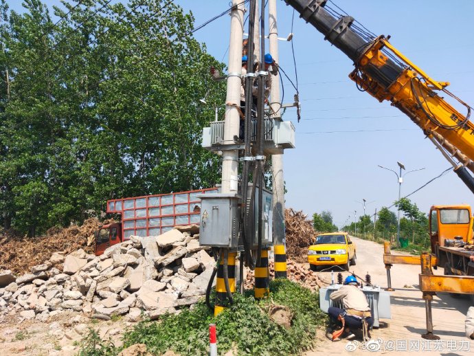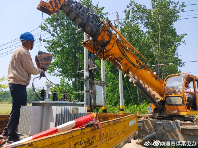 【增容改造備夏峰】5月23日,國網(wǎng)漣水縣供電公司黃營供電所組織施工人員對黃營張橋橋口配變、張橋鄭灣配變進行增容改造,將原容量為200千伏安的變壓器更換為400千伏安變壓器,確保夏季高溫期間居民安全可靠用電。 ????