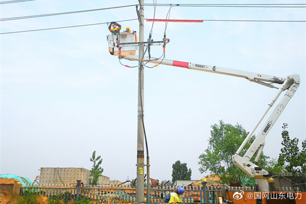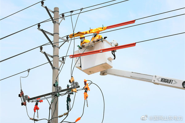 5月25日,國網(wǎng)臨沂供電公司帶電作業(yè)人員在10千伏平安一線冬支線11號電桿上為河東區(qū)太平社區(qū)新上250千伏安變壓器帶電接火,既滿足入夏后該社區(qū)居民的用電需求,又保障沿線居民的不間斷用電。 ????