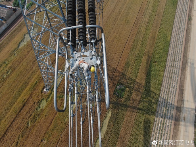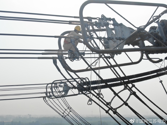 5月26日,為期11天的±800千伏錫泰線年度綜合檢修正式結束,江蘇省送變電有限公司特高壓運檢分公司檢修人員正將線路上接地線拆除。本次檢修一共消除線路本體缺陷321處,更換零值及破損瓷瓶18片?!?00千伏錫泰直流未來將以一個更加良好的狀態(tài)為江蘇大地輸送能源。