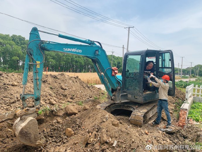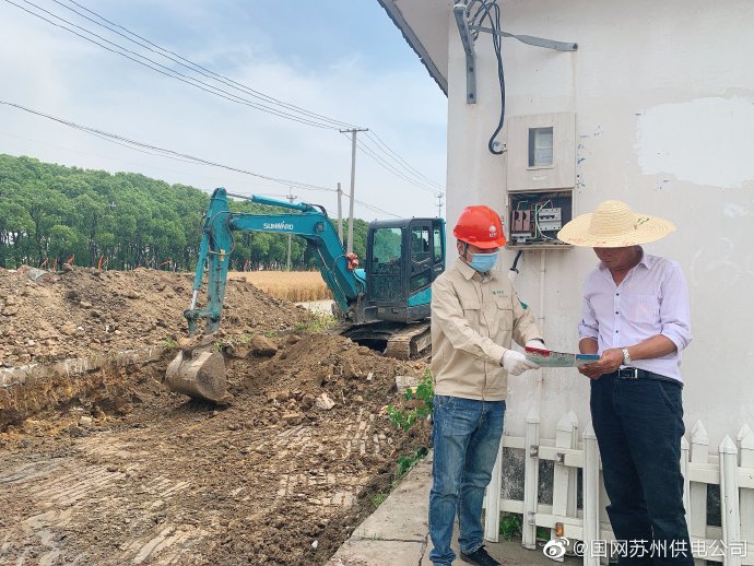 5月27日,國(guó)網(wǎng)蘇州市吳江區(qū)供電公司工作人員在練聚村發(fā)現(xiàn)一挖掘機(jī)在400伏低壓架空線路下開挖路面。經(jīng)過(guò)與施工負(fù)責(zé)人交涉,并向其宣傳《江蘇省電力條例》等,從而將隱患消滅在萌芽狀態(tài)。