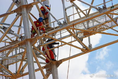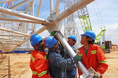 神木750千伏變電站構架吊裝提前告捷 5月28日11時50分,陜北黃土高原上的青天薄云下,隨著一臺260噸履帶吊和一臺70噸汽車吊平穩(wěn)落勾,由@陜西送變電公司?負責施工的神木750千伏變電站750千伏構架吊裝工作,歷時32天,提前近1個月完成計劃任務。神木750千伏輸變電工程本期750千伏構架吊裝包括58根格構式構架柱、54根格構式梁走道,鋼材總重約2050噸。最高高度61.02米,是目前陜西所有750千伏變電站構架吊裝量最大的項目