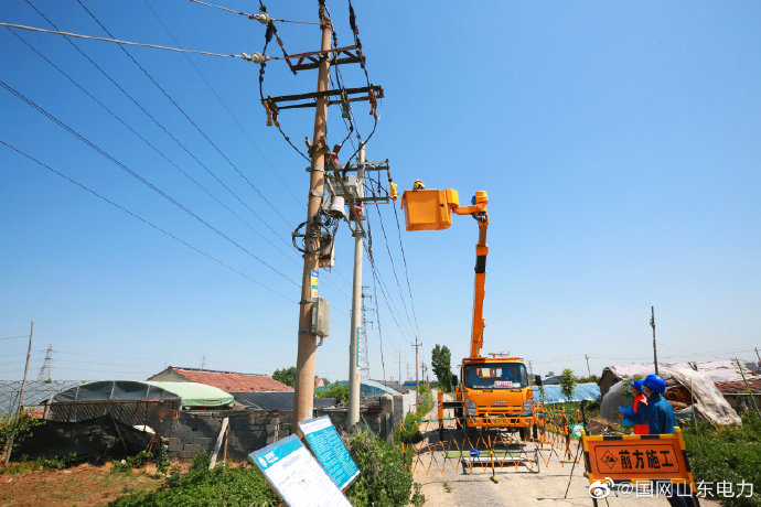 5月28日,國網(wǎng)淄博供電公司帶電作業(yè)工作人員在10千伏營子線66號(hào)桿帶電加裝絕緣包封,提高供電可靠性,保障此線路相關(guān)農(nóng)業(yè)生產(chǎn)基地兩百畝大棚蔬菜灌溉用電。 ????