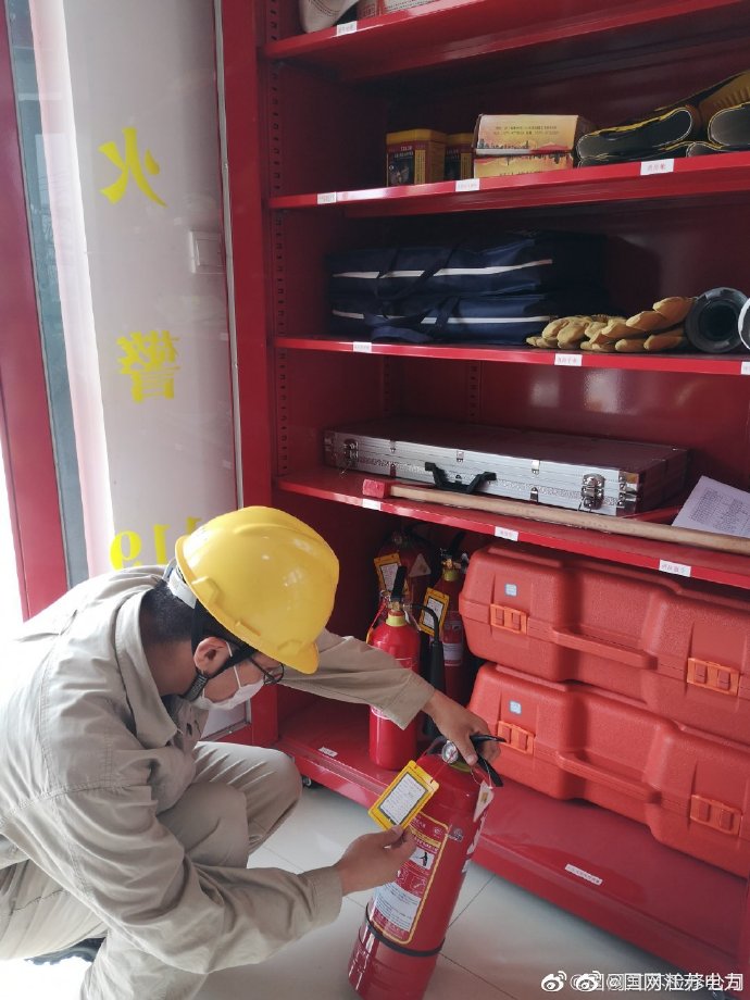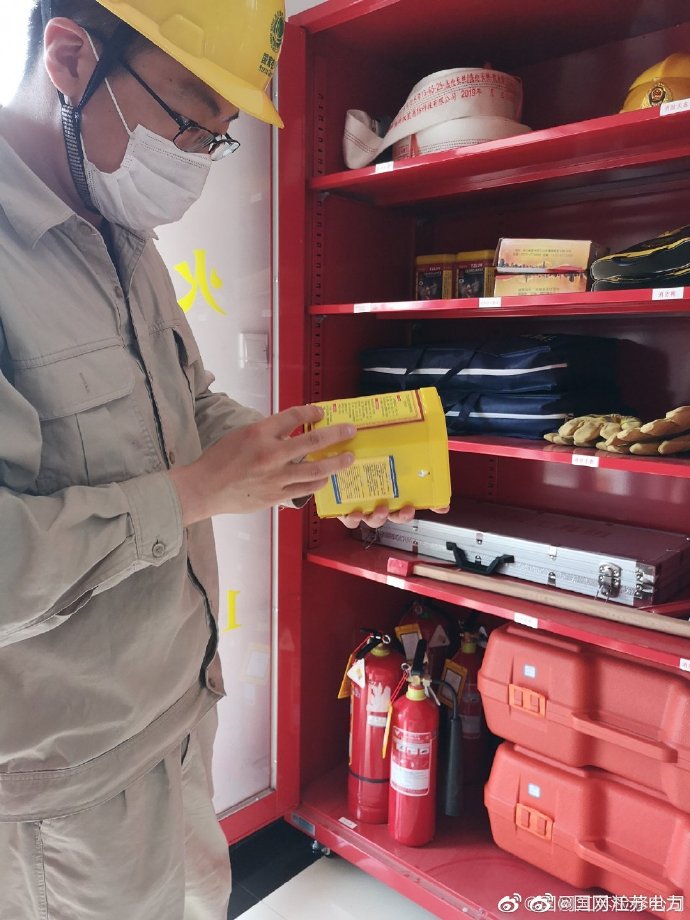 6月6日,國(guó)網(wǎng)江蘇檢修公司徐州運(yùn)維站500千伏姚湖變值班員對(duì)微型消防物資進(jìn)行全面檢查。值班員對(duì)照臺(tái)賬核對(duì)消防物資的種類(lèi)和數(shù)量,仔細(xì)檢查每件消防物資的外觀、壓力值、合格期等,確保其功能正常,保障變電站消防安全。 ????