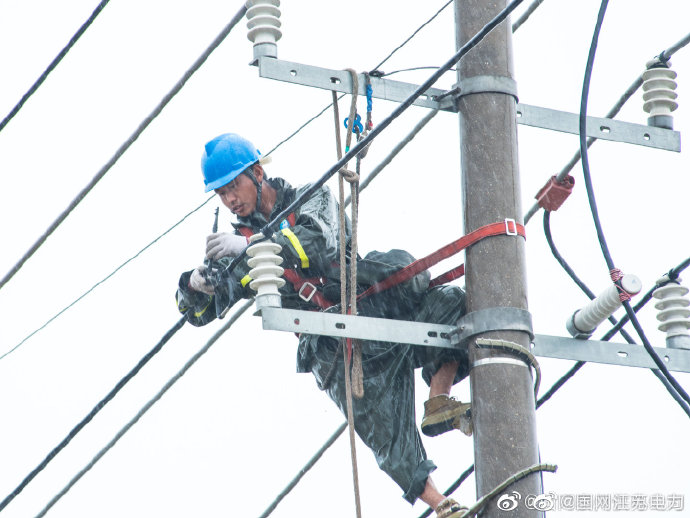 6月15日上午10時,國網(wǎng)靖江市供電公司組織搶修人員冒雨搶修遭雷擊的10千伏文鎮(zhèn)線上六2號變壓器支線,確??蛻艋謴陀秒?。 ????