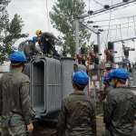 6月27日端午假期,國網(wǎng)安陸市供電公司變電運(yùn)檢班冒著暴雨,為35千伏木梓變電站新增一臺(tái)4000千伏安臨時(shí)變壓器。本次增容改造工程,搶在迎峰度夏前解決了木梓變電站原主變重過載問題,有效提高該站供電可靠性,緩解迎峰度夏供電壓力。