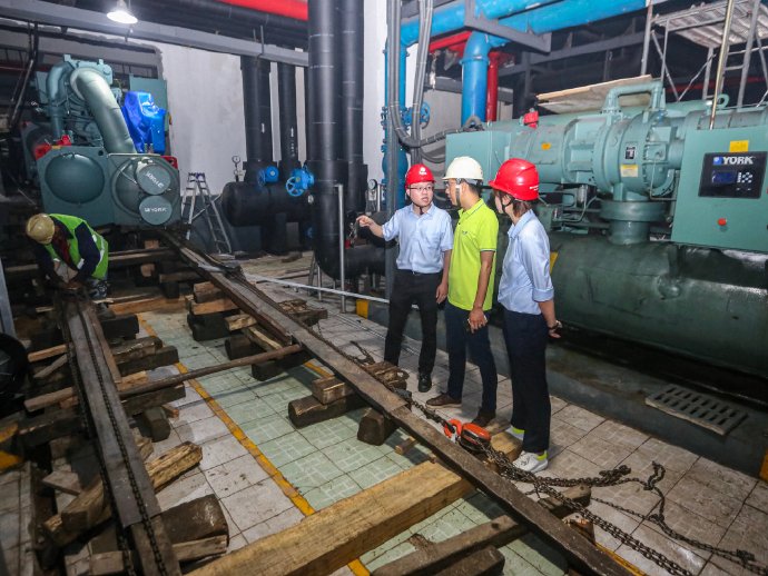 6月27日,國網(wǎng)寧波供電公司首個園區(qū)空調(diào)節(jié)能改造項(xiàng)目在銀晨國際大廈地下室內(nèi)順利竣工。由于運(yùn)行年數(shù)已久,銀晨國際大廈園區(qū)內(nèi)的空調(diào)系統(tǒng)水管管路及其保溫部分明顯破損,水泵、冷卻塔等設(shè)備有故障,制冷效果差,能耗壓力大。為積極響應(yīng)政府提出的“節(jié)能降耗”、“能源雙控”工作要求,進(jìn)一步推動綠色建筑行動,國網(wǎng)(寧波)綜合能源服務(wù)有限公司定制采用合同能源管理模式的節(jié)能改造方案,通過對中央空調(diào)系統(tǒng)的節(jié)能改造及智控管理,大幅降低用戶能耗。趁著端午假期,該公司加班加點(diǎn)對園區(qū)內(nèi)的空調(diào)系統(tǒng)進(jìn)行了改造升級,全力保障銀晨國際園區(qū)內(nèi)租戶能度過清涼一夏。