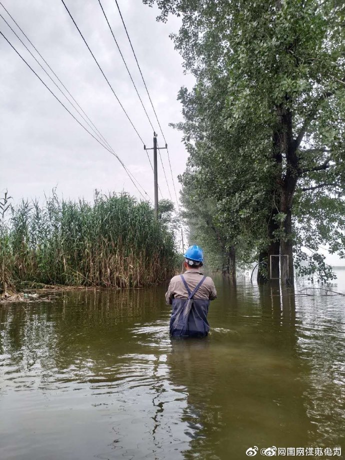 7月12日,國網(wǎng)南京市江北新區(qū)供電公司工作人員身穿防水服,對(duì)龍袍涉水10千伏農(nóng)場(chǎng)線及其供電設(shè)備進(jìn)開展全面檢查,重點(diǎn)記錄跟蹤土質(zhì)松軟地區(qū)以及涉水桿塔、桿基基礎(chǔ)情況,確保第一時(shí)間消除可能危及線路安全的各類隱患。