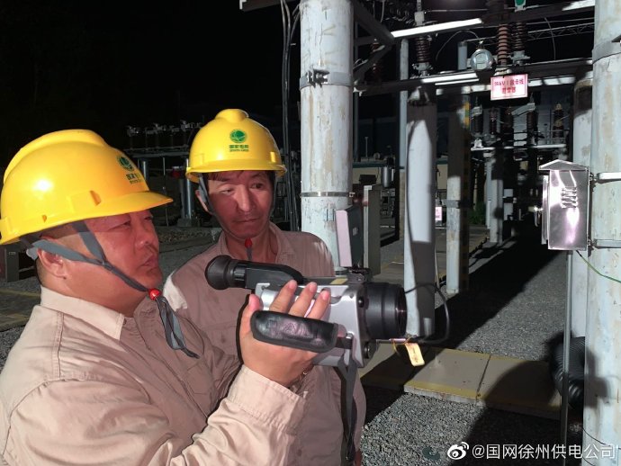 近日,接連幾天氣溫高達36攝氏度,用電負荷也隨之不斷攀升,國網(wǎng)銅山區(qū)供電公司35干伏棠張變電站1號主變一度出現(xiàn)過負荷,為確保電網(wǎng)在夏季用電高峰期間的安全運行,該公司運維人員每天兩次對該站設備進行特巡。8月16日晚23點運維人員冒著高溫使用紅外測溫儀在對設備進行巡視測溫。
