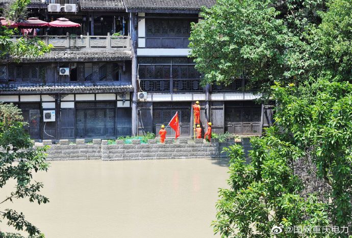8月14日,重慶嘉陵江2020年第1號洪水過境重慶磁器口,當天12點30分,洪峰水位達186.54米,超警戒水位3.9米,比7月26日洪峰水位足足高出了近4米。國家電網(wǎng)紅巖(市區(qū)沙坪壩)共產(chǎn)黨員服務(wù)隊冒著39度的高溫守護在現(xiàn)場,對洪峰沿岸的電力設(shè)施進行不間斷巡視檢查,及時發(fā)現(xiàn)并處理各類安全隱患。洪水過境期間,重慶電網(wǎng)運行平穩(wěn),前往古鎮(zhèn)的游客依舊絡(luò)繹不絕。