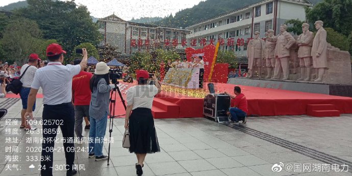 8月21日,2020紅色旅游博覽會通道分會場暨長征國家文化公園(湖南段)系列宣傳活動啟動儀式在通道轉(zhuǎn)兵紀念館隆重舉行。國網(wǎng)通道縣供電公司員工認真檢查會場用電設備,實時測量負荷情況,確保演出順利進行。(楊平、楊盛世)