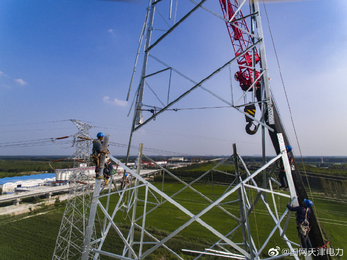 9月1日,天津送變電公司員工在渠陽~南蔡500千伏線路工程現(xiàn)場進行組塔施工,保證工程安全有序進行。
