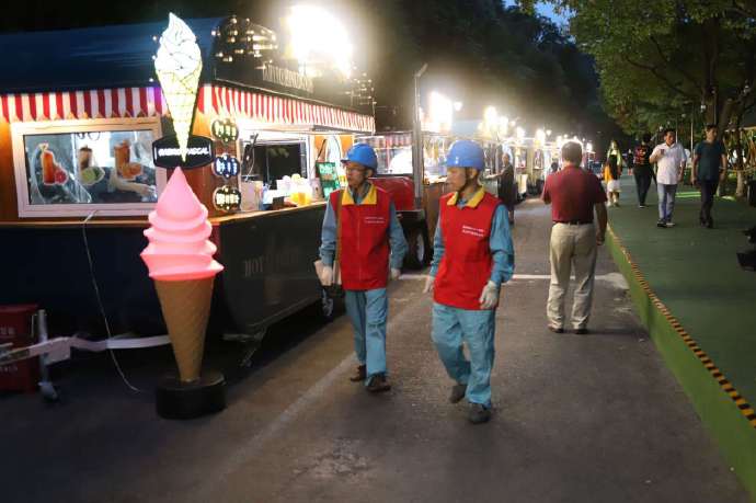 國網(wǎng)寧波市鄞州區(qū)供電公司來到夜貓子夜市進(jìn)行用電量檢查工作