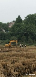 大路坪供電所農(nóng)改施工隊在新建蕉林村東洋灣臺區(qū)進行立桿作業(yè)